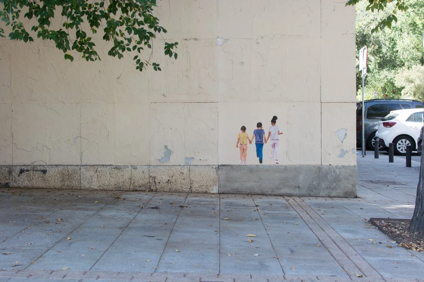 Día tras día la artista va pintando a estas personas: jóvenes y mayores, hombres y mujeres, a menudo con trajes que sugieren culturas y procedencias diversas. Las personas retratadas aparecen siempre de espaldas, para de alguna manera preservar su anonimato pero permitir también a otras personas sentirse identificadas. Su pequeño formato y su característica perspectiva hacen que de lejos puedan confundirse con personas de carne y hueso. En los primeros días, la actividad de Helen bur provocar algunos recelos o sorpresa “¿quién es? ¿qué está haciendo?”, pero poco a poco se corre la voz en el barrio: “una artista inglesa está pintando a personas del barrio por la calle” y la gente se le acerca, intenta comunicarse con ella y por supuesto, le pide ser retratada. Helen ha conseguido crear un buen ambiente en el barrio, un sentimiento positivo y de pertenencia, y lo ha hecho de manera aparentemente sencilla, como lo es la forma en la que las personas van apareciendo pintadas a través de sus manos, sus pinceles, sus pigmentos y su paleta, para la que parte de apenas 5 colores: una especie de proceso mágico en el que las personas de un lugar en los márgenes son puestas en valor.